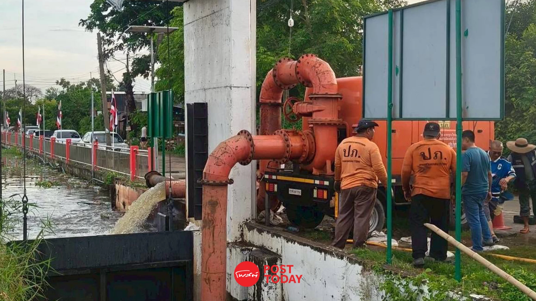 สำหรับพื้นที่ที่มีแนวคันกั้นน้ำชุมชน ทางองค์กรปกครองส่วนท้องถิ่นได้รับคำสั่งให้ เร่งตรวจสอบความมั่นคงแข็งแรงของแนวกั้นน้ำและสถานีสูบน้ำ พร้อมจัดเวรเฝ้าระวังตลอด 24 ชั่วโมง เพื่อให้สามารถตอบสนองได้ทันหากระดับน้ำเพิ่มสูงขึ้นกะทันหัน