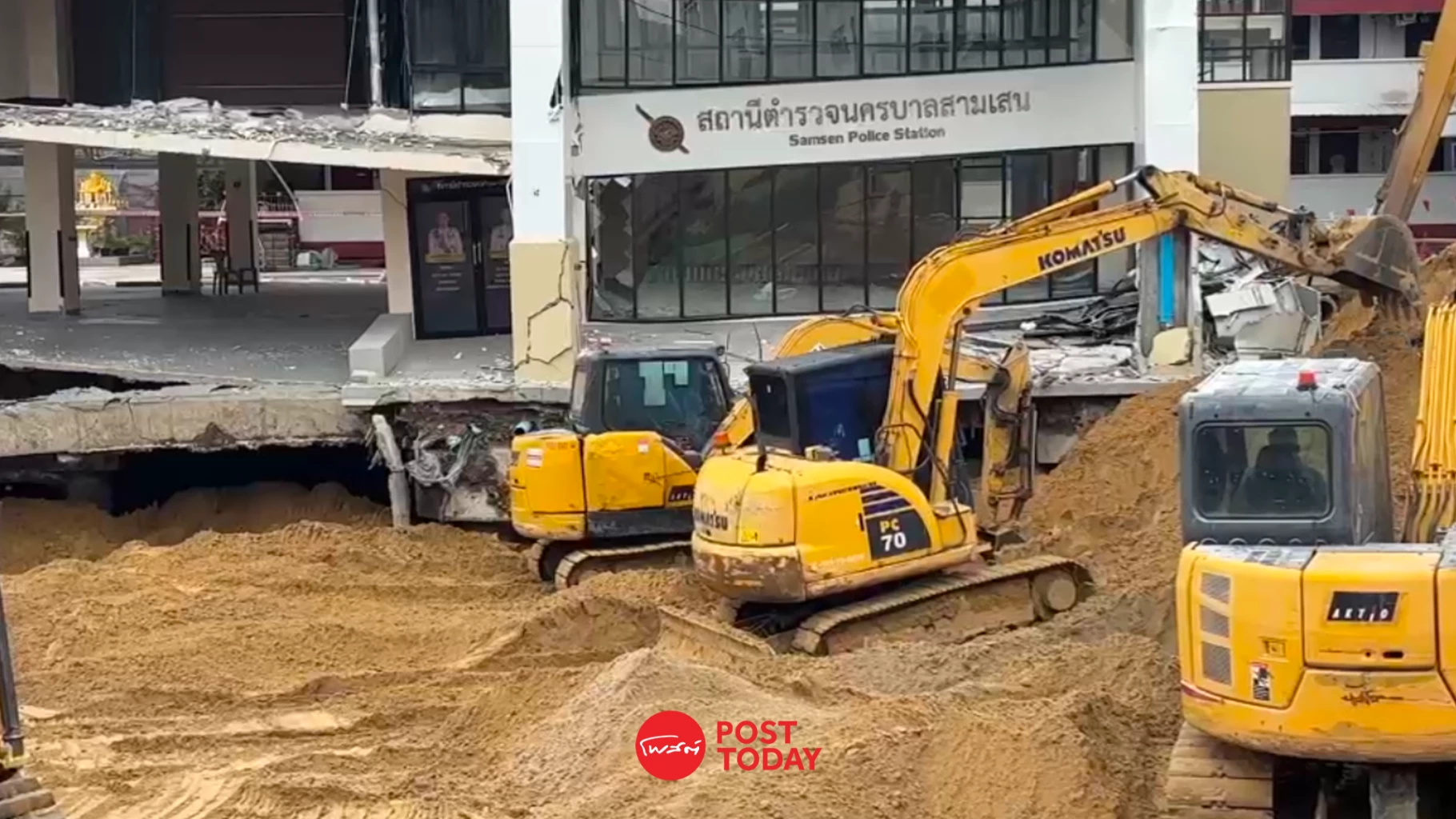 ขณะนี้จึงได้หยุดการรื้อถอนอาคาร สน.สามเสนก่อน เพื่อเร่งถมทรายลงหลุมและดันทรายเข้าไปใต้อาคาร สน.สามเสน ให้ได้ระดับที่เหมาะสม แล้วจึงจะกลับมารื้อถอนอาคาร สน.สามเสน อีกครั้ง ภายในวันที่ 22 ต.ค.68 ตามที่มีการคาดการณ์ไว้ เพราะการถมทรายจะเป็นการเพิ่มความแข็งแรงของดินบริเวณโดยรอบ และป้องกันไม่ให้เกิดการพังทลายของดินเพิ่ม