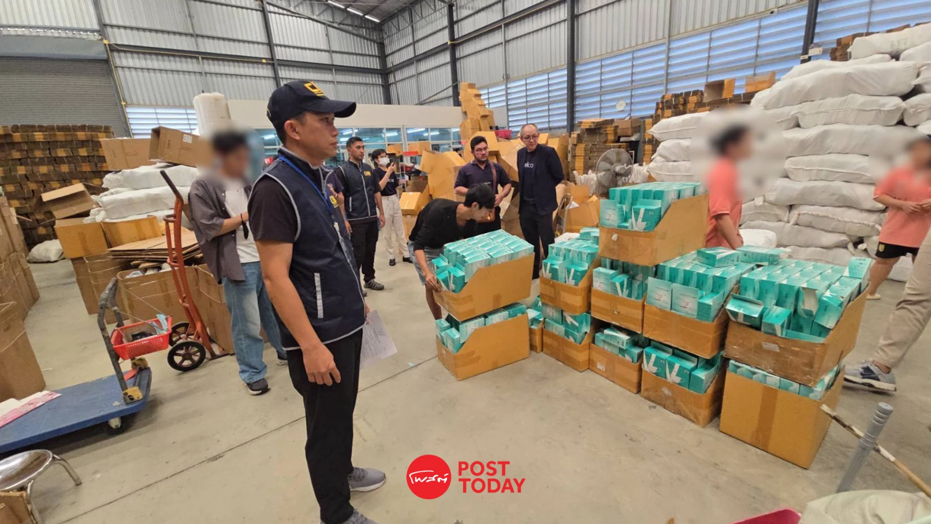 กองบัญชาการตำรวจสอบสวนกลาง (CIB) โดย กองบังคับการปราบปรามการกระทำผิดเกี่ยวกับอาชญากรรมทางเศรษฐกิจ เข้าตรวจค้นโกดังชั้นเดียว หมู่ ๒ ตำบลศีรษะจรเข้น้อย อำเภอบางเสาธง จังหวัดสมุทรปราการ