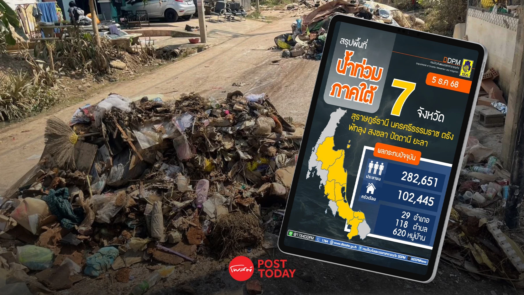 ภาคใต้ยังหานัก! ปภ. รายงานยังมีน้ำท่วมภาคใต้ 7 จังหวัด เร่งระบายน้ำในพื้นที่น้ำท่วมขัง-เยียวยาผู้ประสบภัย