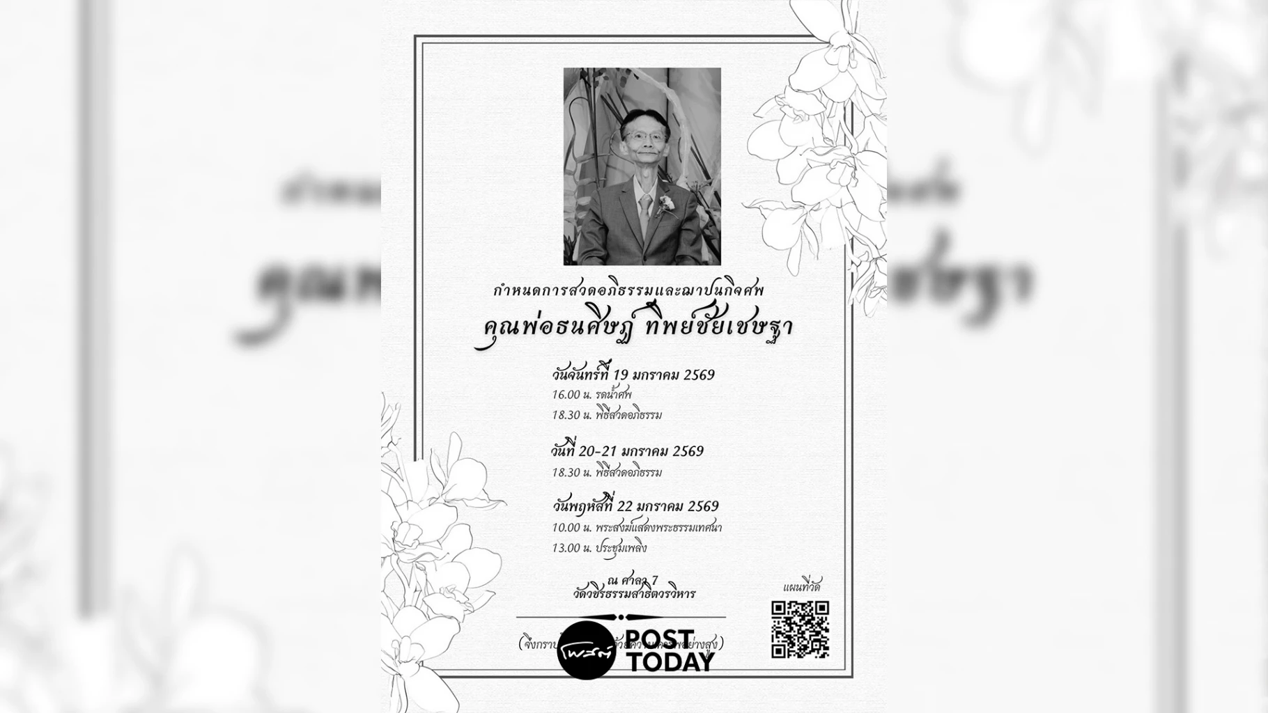 “คุณพ่อธนศิษฎ์ ทิพย์ชัยเชษฐา” จากไปอย่างสงบ กำหนดสวดอภิธรรม 19-21 ม.ค.69 ณ. วัดวชิรธรรมสาธิตวรวิหาร กำหนดประชุมเพลิง 22 ม.ค. 69