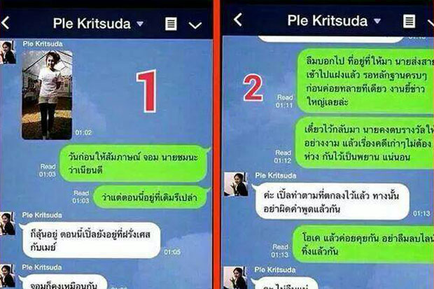 โดยบทสนทนาผ่านโปรแกรมไลน์มีดังนี้