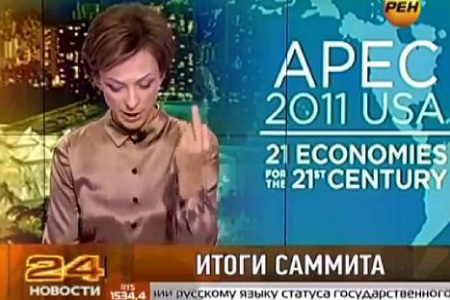 ทาเทียนา ลิมาโนวา นักข่าวชื่อดังของสถานีโทรทัศน์ REN TV ของรัสเซีย สร้างความฮือฮาไม่น้อยเมื่อเจ้าตัวชูนิ้วกลางขณะกำลังอ่านชื่อประธานาธิบดีบารัก โอบามา กลางอากาศ