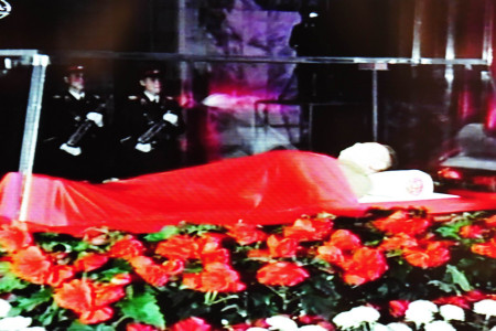 เมื่อวันที่ 20 ธ.ค. สถานีโทรทัศน์เกาหลีเหนือได้เผยแพร่ภาพศพของ นายคิม จองอิล ผู้นำของเกาหลีเหนือที่ถูกบรรจุอยู่ในโลงแก้ว โดยร่างของนายคิม จองอิลหนุนหมอนสีขาว และถูกห่มด้วยผ้าสีแดง ซึ่งโลงแก้วที่บรรจุศพนั้นถูกอยู่บนแท่นขนาดใหญ่ที่มีดอกไม้ล้อมรอบ ท่ามกลางเจ้าหน้าที่ระดับสูงและนายคิม จอง อุน บุตรชายคนเล็ก ที่ได้เข้าเคารพศพ