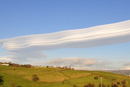 ภาพปุยนุ่นสีขาวบนท้องฟ้าเหล่านี้มองดูแล้วเหมือนไม่มีอะไรผิดปกติ หากว่าไม่ได้เกิดขึ้นที่ Farsley ใน West Yorkshire วานนี้ โดยทั่วไปแล้ว รู้จักในชื่อว่า แอลโตคิวมูลัส เลนติคิวลาริส หรือที่เรียกกันสั้นๆว่า เมฆจานบิน