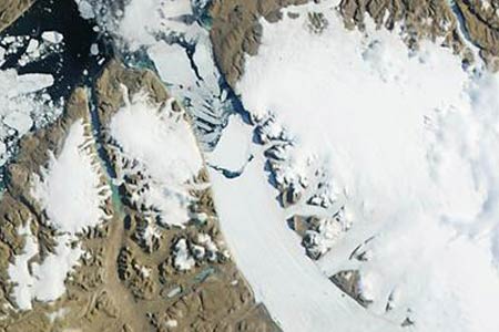ภาพถ่ายจากดาวเทียมขององค์การนาซา เผย ธารน้ำแข็งขนาดยักษ์ซึ่งมีขนาดใหญ่กว่าเกาะแมนฮัตตัน 2 เท่า ได้แยกออกจากธารน้ำแข็งปีเตอร์มันน์ทางชายฝั่งตะวันตกเฉียงเหนือ ของกรีนแลนด์ ซึ่งอาจเป็นสัญญาณล่าสุดของปัญหาโลกร้อน