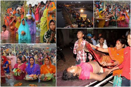 ที่เมืองปัฏนา รัฐพิหาร ทางตะวันออกของอินเดีย เกิดเหตุเหยียบกันตาย ของชาวอินเดีย ที่ไปร่วมพิธีสักการะเทพสุริยะ บริเวณริมฝั่งแม่น้ำคงคา เพื่อรอสวดมนต์ให้ทันพระอาทิตย์ แต่เกิดไฟฟ้าดับ สร้างความตื่นตระหนกให้คนที่เบียดเสียดกันอยู่บนสะพานไม้ไผ่ชั่วคราว ที่นำลงไปยังแม่น้ำ ทำให้คนเหล่านี้แย่งกันขึ้นฝั่ง และเกิดการเหยียบกันขึ้น ส่งผลให้มีผู้เสียชีวิตอย่างน้อย 14 คนและอีก 6 คนได้รับบาดเจ็บอาการสาหัส