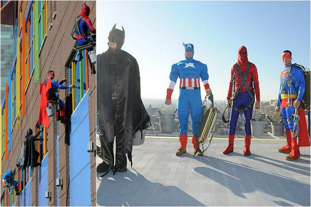 ภารกิจใหม่ของซุปเปอร์ฮีโร่ กับการเช็ดกระจกหน้าต่างให้โรงพยาบาลเด็ก
