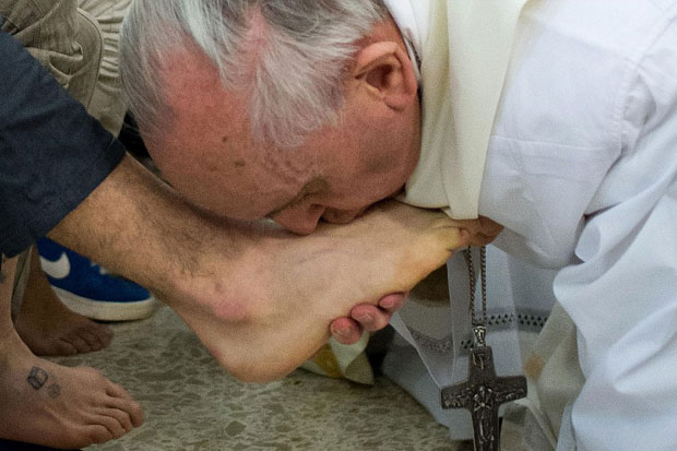 สมเด็จพระสันตะปาปาฟรานซิส ที่ 1 ทรงประกอบพิธีล้างเท้า ซึ่งเป็นหนึ่งในพิธีในช่วงสัปดาห์ก่อนจะถึงเทศกาลอีสเตอร์ แก่ผู้ต้องขังในสถานกักกันเยาวชนในกรุงโรม เนื่องในวันพฤหัสบดีศักดิ์สิทธิ์ (Holy Thursday) เพื่อรำลึกถึงการรับประทานอาหารค่ำมื้อสุดท้ายของพระเยซูคริสต์