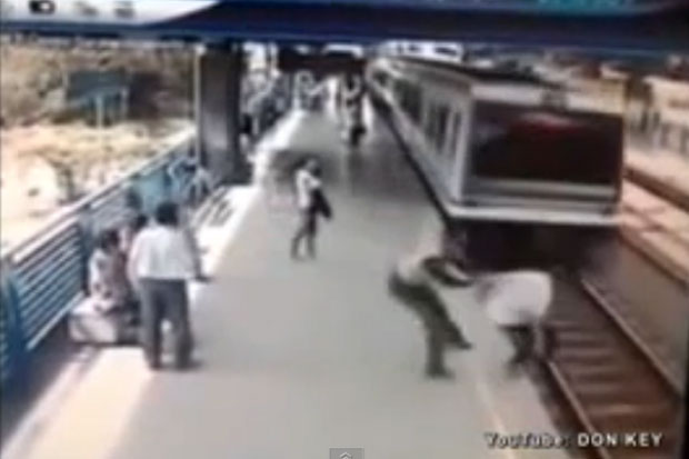 คลิปตำรวจโคลัมเบียช่วยคนกระโดดตัดหน้ารถไฟ