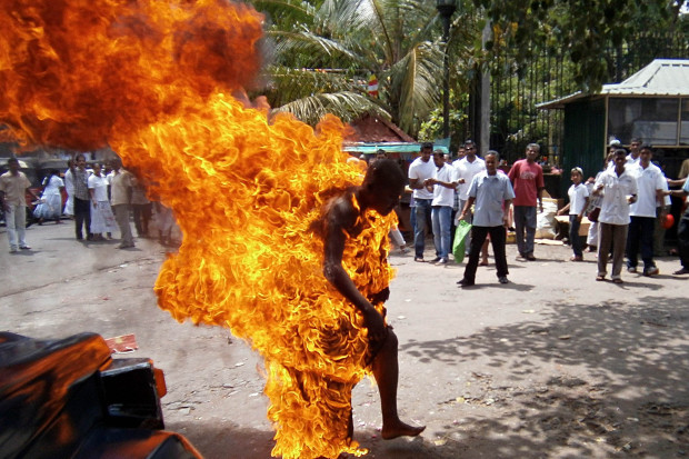 พระศรีลังกาจุดไฟเผาตัวประท้วงฆ่าปศุสัตว์