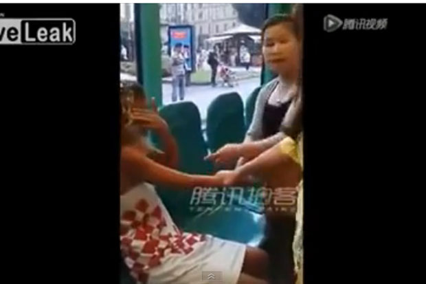 หญิงสาวชาวต่างชาติ รายนี้ก่อเหตุล้วงกระเป๋าสาวจีนบนรถโดยสาร และนำมาได้ซ่อนไว้ในชุดชั้นในของตัวเอง แต่แล้วในที่สุดก็ถูกสาวจีนอีกคนหนึ่งจับได้ แต่ยังปฏิเสธและยืนกรานว่าไม่ได้ทำ ทำให้ต้องขอค้นตัวแต่สาวต่างชาติไม่ยอม ทำให้ 2 สาวจีนสุดฉุนเข้ามาทั้งตบและถีบใส่เพื่อเป็นการสั่งสอน