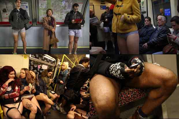 สำนักโกบอลโพสต์ รายงานว่า วันที่ 12 ม.ค.ที่ผ่านมา ตามเมืองใหญ่ในหลายประเทศทั่วโลกได้มีการจัดกิจกรรมถอดกางเกง ให้เหลือแต่กางเกงชั้นใน แล้วขึ้นโดยสารในรถไฟฟ้าใต้ดิน หรือเรียกว่า "No Pants Subway Ride"