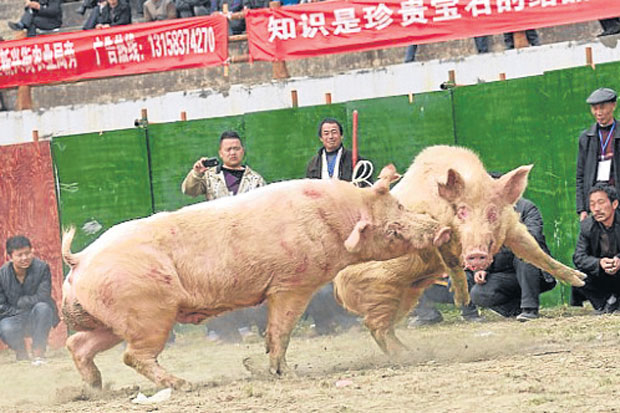 ‘หมูชน’ กีฬาทารุณสัตว์ในจีน