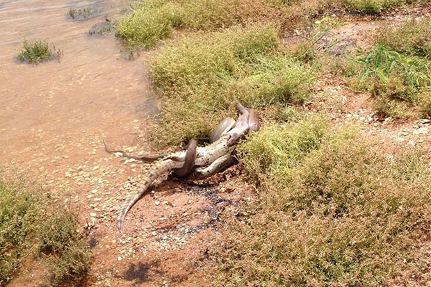 งูความยาว 10 ฟุต ซึ่งคาดว่าจะเป็นงูยักษ์ได้ต่อสู้กับจระเข้บริเวณทะเลสาบมูนดาร์รา ในควีนส์แลนด์ ของออสเตรเลีย ก่อนที่สุดท้ายงูหลามจะมีชัยชนะเหนือจระเข้ และได้กินจระเข้เข้าไปทั้งตัว โดยทิฟฟานี่ คอร์ลิส และมาร์วิน มูลเลอร์ ชาวออสเตรเลีย 2 คน ซึ่งเป็นผู้ที่อาศัยอยู่ในบริเวณนั้นเป็นผู้จับภาพเอาไว้ได้