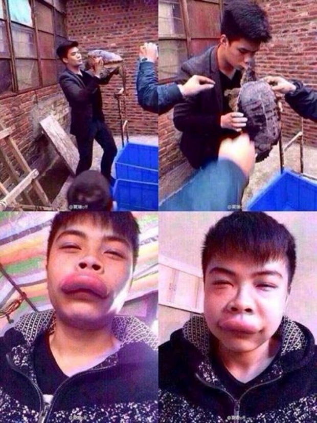 เว็บจีนเผยภาพหนุ่มปากบวมหลังเจอเต่ากัด