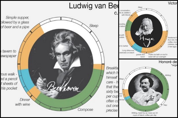 หากคิดว่าการใช้ชีวิตของ บีโธเฟนแปลกแล้ว ขอเชิญพบกับ วิกเตอร์ ฮูโก นักเขียนชาวฝรั่งเศส ที่ต้องตื่นทุกเช้าด้วยเสียงปืนประจำวัน ก่อนที่จะอาบน้ำที่เย็นยะเยือกบนอ่างอาบน้ำสาธารณะบนหลังคาบ้านตนเอง นอกจากนี้ฮูโกยังไปตัดผมทุกวันอีกด้วย
