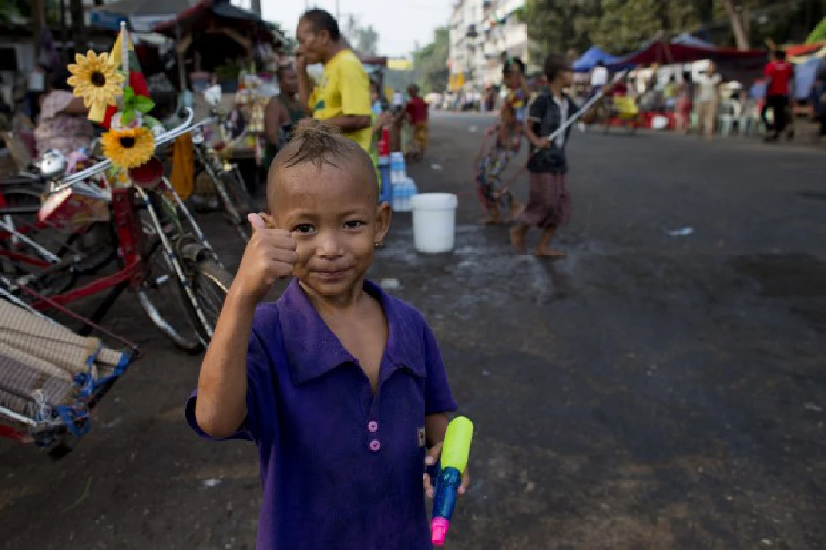 พม่าเล่นสาดน้ำในเทศกาลสงกรานต์ บรรยากาศสุดคึกคัก "เต็ง เส่ง" อวยพรหใประเทศเกิดสันติ มีอิสระภาพ-ความเท่าเทียม