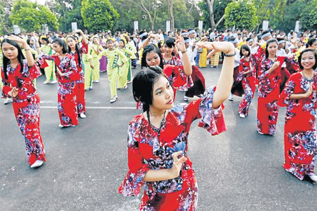 ประชาชนชาวพม่าร่วมฉลองเทศกาลติงจัน ซึ่งเป็นวันขึ้นปีใหม่ตามประเพณีดั้งเดิม เช่นเดียวกับเทศกาลสงกรานต์ในไทย ลาว และกัมพูชา ซึ่งรัฐบาลพม่าจัดงานเฉลิมฉลองอย่างยิ่งใหญ่ในกรุงย่างกุ้ง โดยพลเมืองต่างก็สาดน้ำ ประแป้งให้แก่กัน ตามความเชื่อที่ว่าเป็นการทำความสะอาดและล้างบาปจากปีเก่า