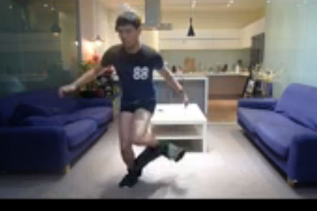 คลิปหนุ่มจีนโชว์ลีลาใส่กางเกงโดยไม่ต้องใช้มือ