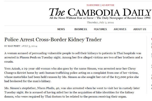 กัมพูชาเดลีเผยตำรวจเขมรจับนายหน้าลักลอบค้าไตรายใหญ่ของประเทศ สารภาพโรงพยาบาลชื่อดังในไทยมีส่วนพัวพัน