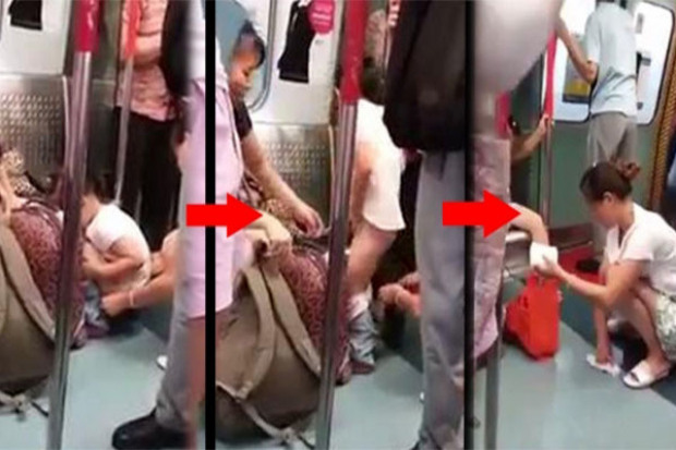 จีนแชร์กันว่อน แม่ยอมให้ลูกสาวฉี่บนรถไฟฟ้าใต้ดิน ท่ามกลางสายตาผู้โดยสาร