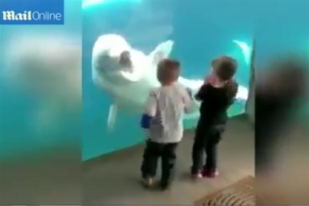 สื่อนอกเผยแพร่คลิปน่ารัก เมื่อวาฬเบลูกาในพิพิธภัณฑ์สัตว์น้ำเล่นจ๊ะเอ๋กับเด็กๆที่เข้าชม
