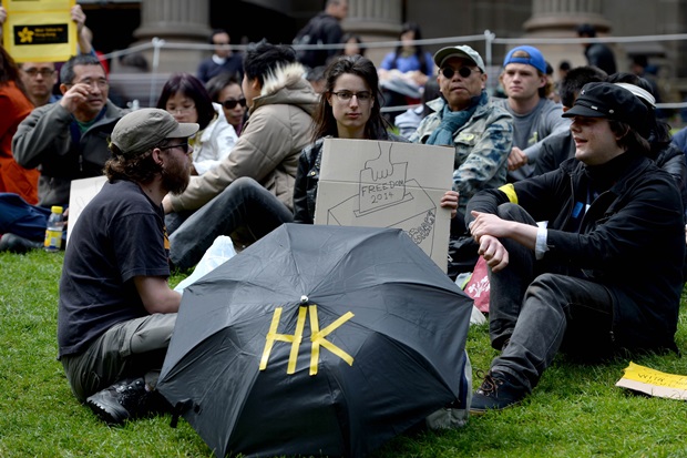 ผู้ชุมนุมเรียกร้องประชาธิปไตยมากกว่า 3,000 คนมารวมตัวกันนอกสำนักงานของเหลียงชุนหยิง ผู้นำฮ่องกงคนปัจจุบันที่ได้รับการเลือกสรรโดดยรัฐบาลกรุงปักกิ่ง เนื่องจากต้องการให้ผู้บริหารสูงสุดของฮ่องกงลาออกจากตำแหน่ง ในขณะเดียวกัน ตำรวจปราบจลาจลก็ถืออาวุธครบมือ เตรียมปฏิบัติหน้าที่อยู่หลังแนวกั้น