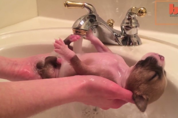 สื่อนอกเผยคลิปน่ารักลูกหมาน้อยจรจัดหน้าเคลิ้มยามได้อาบน้ำ