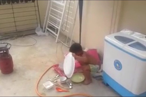 คลิปน่ารัก!ฟังเด็กน้อยบ่นหลังโดนแม่ใช้ล้างจาน