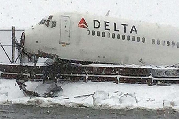สายการบินเดลต้าระทึก เครื่องบินไถลออกนอกรันเวย์ในนิวยอร์ก พายุหิมะทำเหตุ
