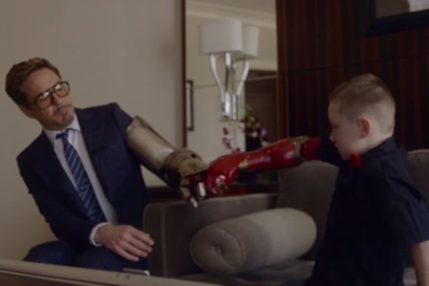 เมื่อ'พระเอกไอรอนแมน'มอบแขนเทียมยนต์ให้เด็กไร้แขน (ชมคลิป)