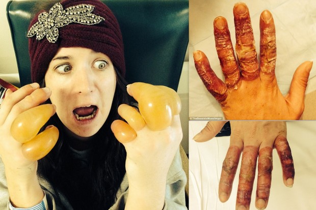 โชคดีที่ที่แพทย์ได้ดำเนินการเจาะเอาน้ำภายในออกมาได้โดยไม่ต้องตัดมือของเธอออก