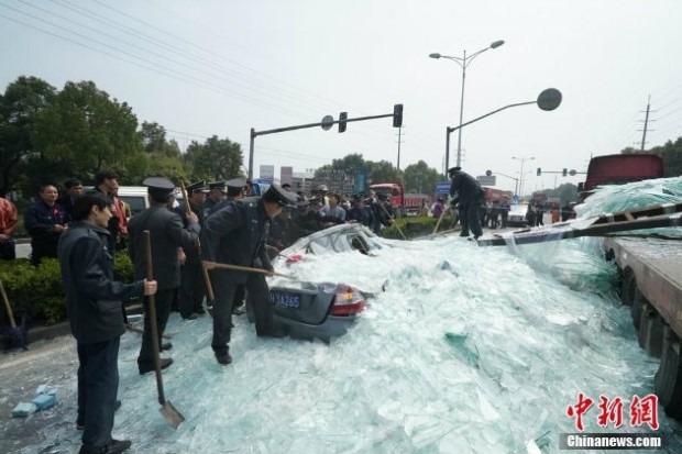 สยอง!รถพ่วงจีนทำกระจกยักษ์ร่วงใส่รถคันอื่น ดับ3ราย