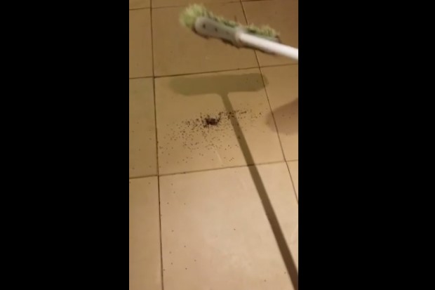 ฝรั่งใจเด็ดใช้ไม้ตีแมงมุมท้องแก่ให้ตาย ปรากฏว่าในท้องแตกกระจายวิ่งเกลื่อนห้อง