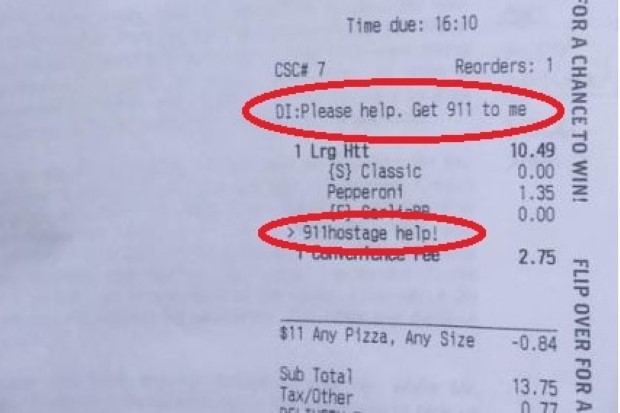 พนักงานร้านพิซซ่าช่วยแจ้งเจ้าหน้าที่เข้าช่วยแม่ลูกถูกจับเป็นตัวประกัน หลังส่งข้อความช่วยเหลือผ่านออร์เดอร์อาหาร