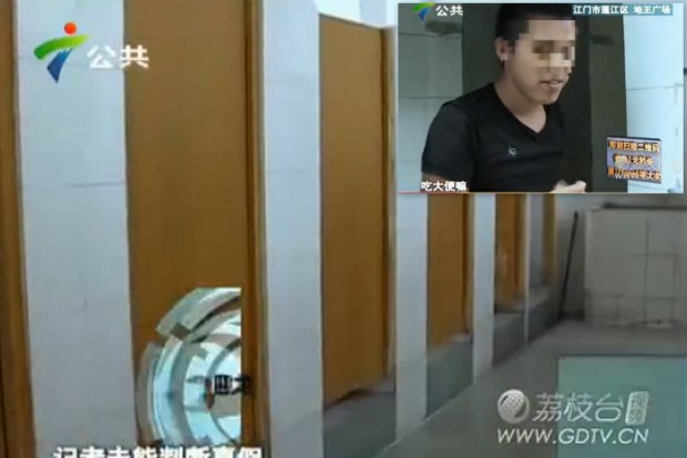 หนุ่มจีนย่องเข้าห้องน้ำหญิง เพื่อกิน'อึ'!?