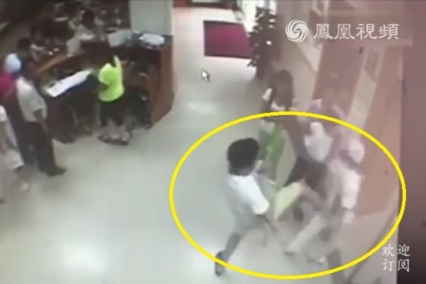 ชายจีนถีบพยาบาลล้ม ฉุนบอกลูกป่วยไข้ให้รอตามคิว (มีคลิป)
