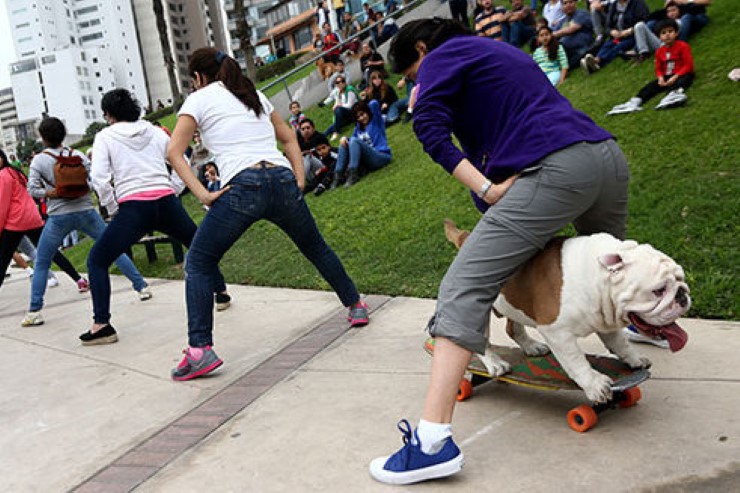 ชมคลิปน้องหมาบลูด็อกโชว์เล่นสเก็ตบอร์ดลอดขาคน30ชีวิต
