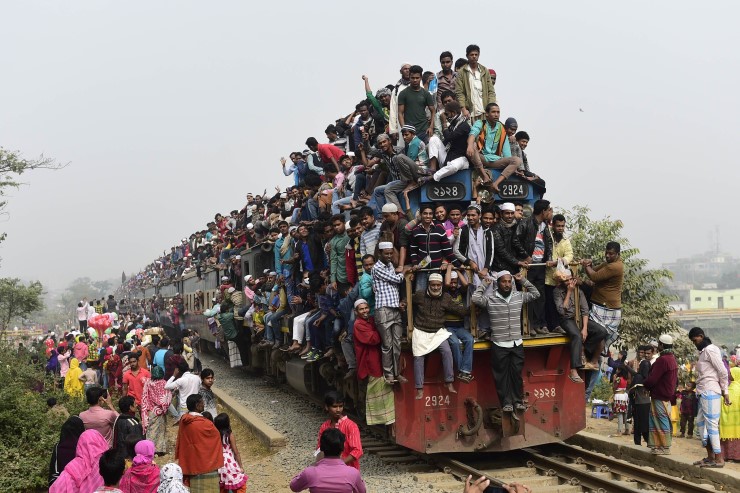 ชาวมุสลิมในบังกลาเทศโดยสารรถไฟกันอย่างสุดแน่นขนัด หลังเข้าร่วมพิธี อะเขรี มูนาจัต หรือการภาวนาถึงพระเจ้า ซึ่งจัดขึ้นเป็นวันสุดท้ายเมื่อวันที่ 10 ม.ค.ที่ผ่านมา ณ อิจติมะฮ์ ซึ่งเป็นจุดชุมนุมของมุสลิมจากทั่วโลก ในเมืองตองคี โดยศาสนิกชนจะเข้าร่วมสวดมนต์ริมสองฝั่งแม่น้ำในบังกลาเทศหลังจากการชุมนุมนี้สิ้นสุดลงด้วย