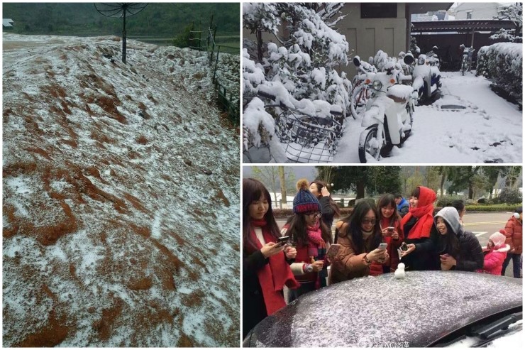 ส่วนในจีนพื้นที่ทางตอนใต้ซึ่งตามปกติมีสภาพอากาศกึ่งร้อนชื้น และฤดูหนาวไม่หนาวจัด ขณะนี้สถานการณ์กลับตรงกันข้าม โดยมณฑลกวางตุ้งประสบกับคลื่นความหนาวรุนแรงถึงขนาดเกิดปรากฏการณ์น้ำแข็งจับตัว และล่าสุดวานนี้ นครกว่างโจวเกิดหิมะตกครั้งแรกในรอบ 60 ปี ทำให้ชาวเมืองพากันออกมาถ่ายภาพละปั้นตุ๊กตาหิมะกันอย่างครึกครื้น