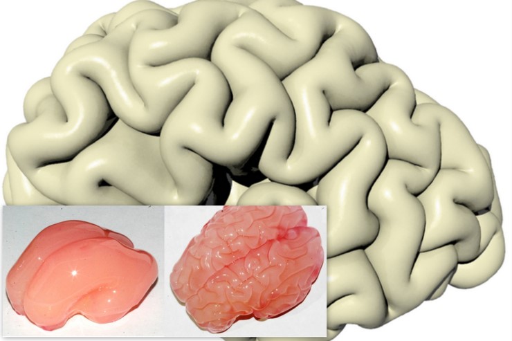 สำนักข่าว'บีบีซี'รายงานว่า นักวิจัยจากมหาวิทยาลัยในฟินแลนด์ได้คิดค้นแบบจำลองแสดงพัฒนาการของสมองมนุษย์จากที่มีผิวราบเรียบเมื่อยังเป็นตัวอ่อนในครรภ์มารดา ไปสู่สมองที่มีรอยหยักเพิ่มขึ้น โดยการการใช้เพียงซิลิโคนสองชั้นเท่านั้น