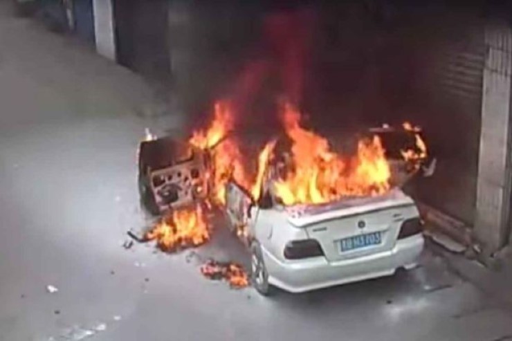 เหตุการณ์ดังกล่าวเกิดขึ้นเมื่อวันที่ 6 ก.พ. ขณะที่เจ้าของได้ทิ้งรถเพื่อไปทำธุระเพียง 10 นาที เมื่อเขากลับมาก็พบว่ารถของเขาไฟลุกจนควันขึ้น ท่ามกลางผู้คนที่เดินผ่านไปผ่านมาอย่างไม่สนใจหรือให้ความช่วยเหลือ ชายคนดังกล่าวได้พยายามใช้เสื้อคลุมดับไฟแต่ไฟลุกลามรวดเร็ว จึงต้องวิ่งไปหยิบถังดับเพลิงมาฉีดพ่นเอง สุดท้ายรถยนต์คันดังกล่าวก็เสียหายทั้งคัน