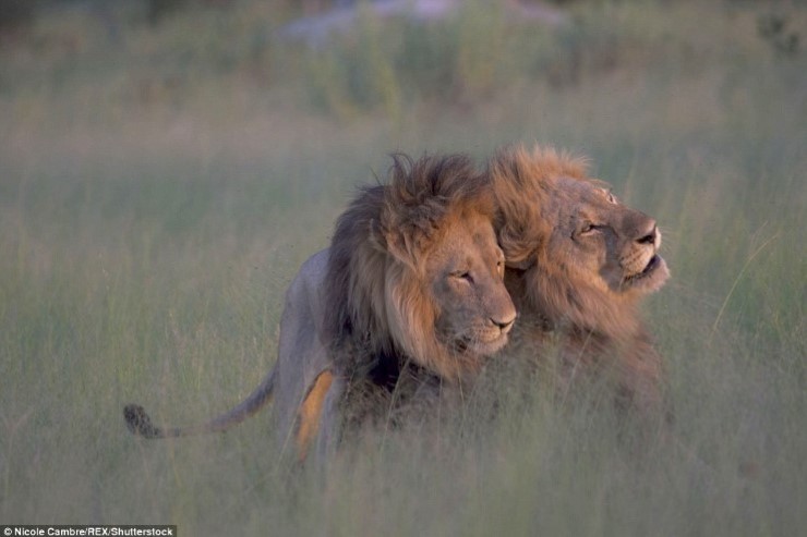 ภาพดังกล่าวถ่ายโดย'นิโคล แคมเบร'นักกฎหมายชาวเบลเยียม ขณะที่กำลังมาท่องเที่ยวป่าซาฟารีในบอตสวานา โดยเมื่อสอมถามไปไกด์ของเธอนั้น ยังพบความจริงว่าสิงโตหนุ่มทั้งคู่มีพฤติกรรมเช่นนี้มาได้นานกว่าสัปดาห์แล้ว