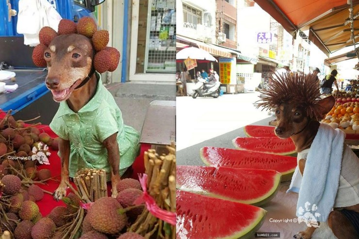 แม่ค้าผลไม้ชาวไต้หวันจับสุนัขคู่ใจแต่งตัวหลากสไตล์ช่วยขายของ ขณะที่สังคมออนไลน์ร่วมแชร์ภาพเป็นจำนวนมาก