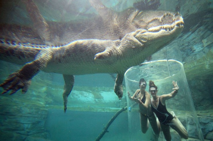 กิจกรรมน่าสนใจนี้มีชื่อว่า Cage of Death เปิดให้บริการแล้วที่สวนสัตว์ Crocosaurus Cove ในเมืองดาร์วิน ประเทศออสเตรเลีย โดยเจ้าหน้าที่จะพาตัวลูกค้าที่สนใจลงไปในถังแก้วขนาดใหญ่ 5 เมตร ก่อนที่ถังนี้จะดำลงไปในน้ำของตู้กระจกซึ่งเต็มไปด้วยจระเข้