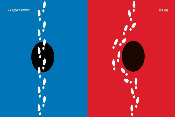 ต้นฉบับของโปรเจคแสดงภาพเปรียบเทียบที่แตกต่างกันของวัฒนธรรมชาวตะวันตก (สีฟ้าด้านซ้าย) และวัฒนธรรมชาวตะวันออก (สีแดงด้านขวา) เอาไว้ด้วยกัน 47 ภาพ ตั้งแต่เรื่องภายในอย่างการแสดงความคิดเห็น ไปจนถึงมารยาทในร้านอาหารเป็นต้น