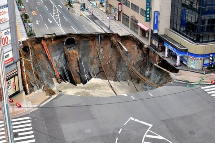 ช่วงเช้ามืดของวันนี้ถนนในเมืองฟุกุโอกะเกิดยุบตัวเป็นหลุมขนาดใหญ่ ความกว้าง 20 เมตร เจ้าหน้าที่เชื่อเป็นผลจากการก่อสร้างใกล้เคียง