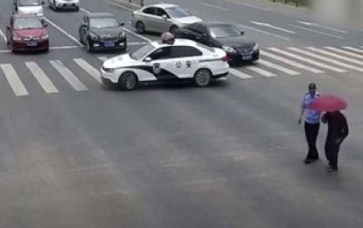 ประทับใจ! ตำรวจจราจรจีนจอดรถช่วยคนแก่ข้ามถนน