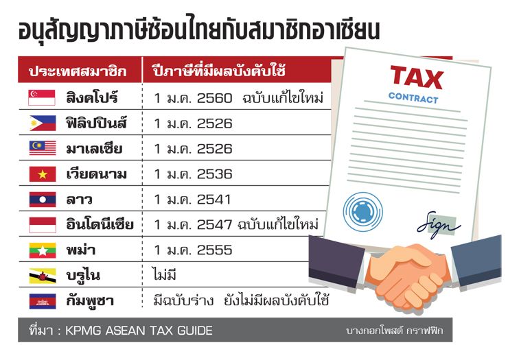 ทั้งนี้ กัมพูชาได้มีการเซ็นสัญญากับสิงคโปร์เป็นประเทศแรกในอาเซียนไปเมือเดือน มิ.ย.ปีที่แล้ว ประเทศไทยก็น่าจะเป็นประเทศที่สองที่มีการทำอนุสัญญาภาษีซ้อนกับกัมพูชา ในปัจจุบันมาเลเซีย กับเวียดนาม เป็นประเทศที่มีการทำอนุสัญญาภาษีซ้อนครบกับทุกประเทศสมาชิกหากไม่นับกัมพูชา รองลงมาคือสิงคโปร์กับไทย โดยสิงคโปร์ยังไม่ได้ทำกับลาว ขณะที่ไทยยังไม่ได้ทำกับบรูไน